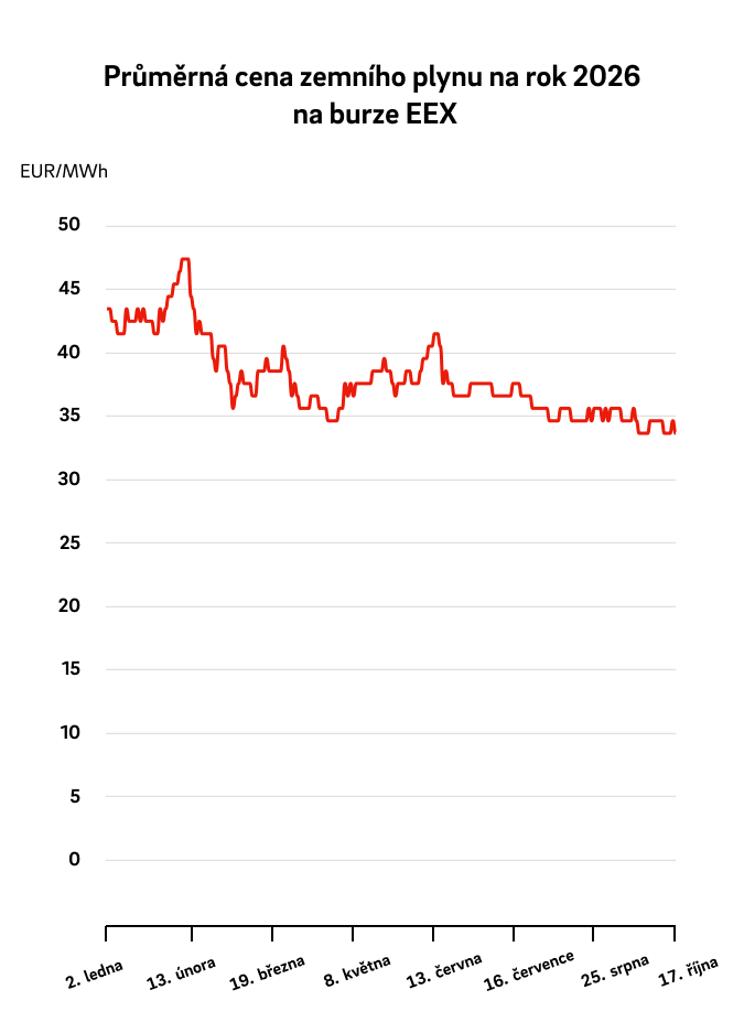 Je však nutné dodat, že dodavatelé s tak velkým předstihem nakupují jen malou část dodávek, důležitější proto je, jak se bude cena plynu na rok 2027 vyvíjet až v průběhu roku 2026.