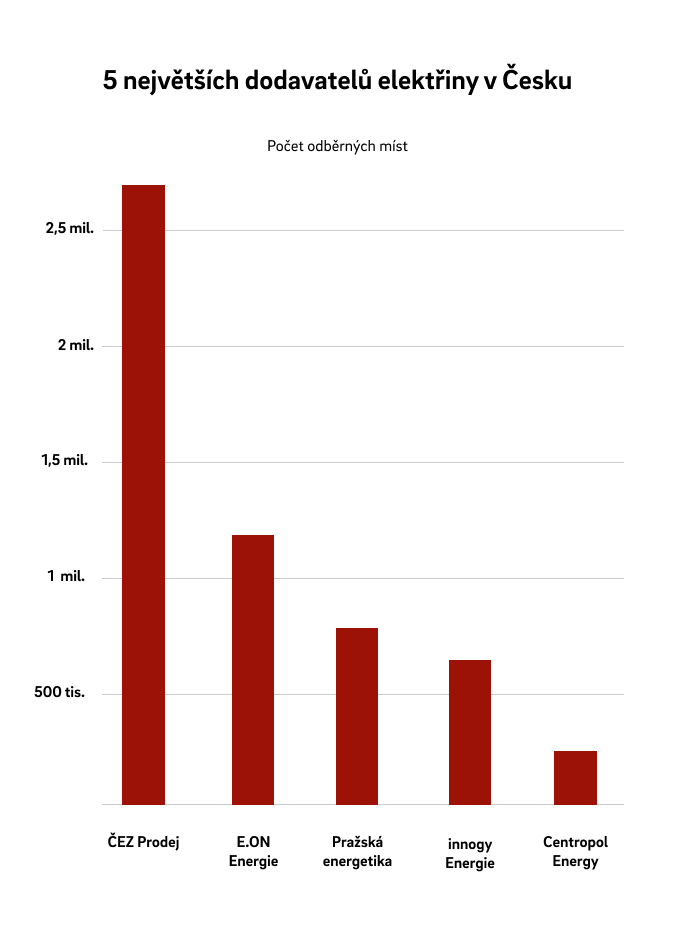 - ČEZ Distribuce – zajišťuje distribuci ve zbytku ČR.